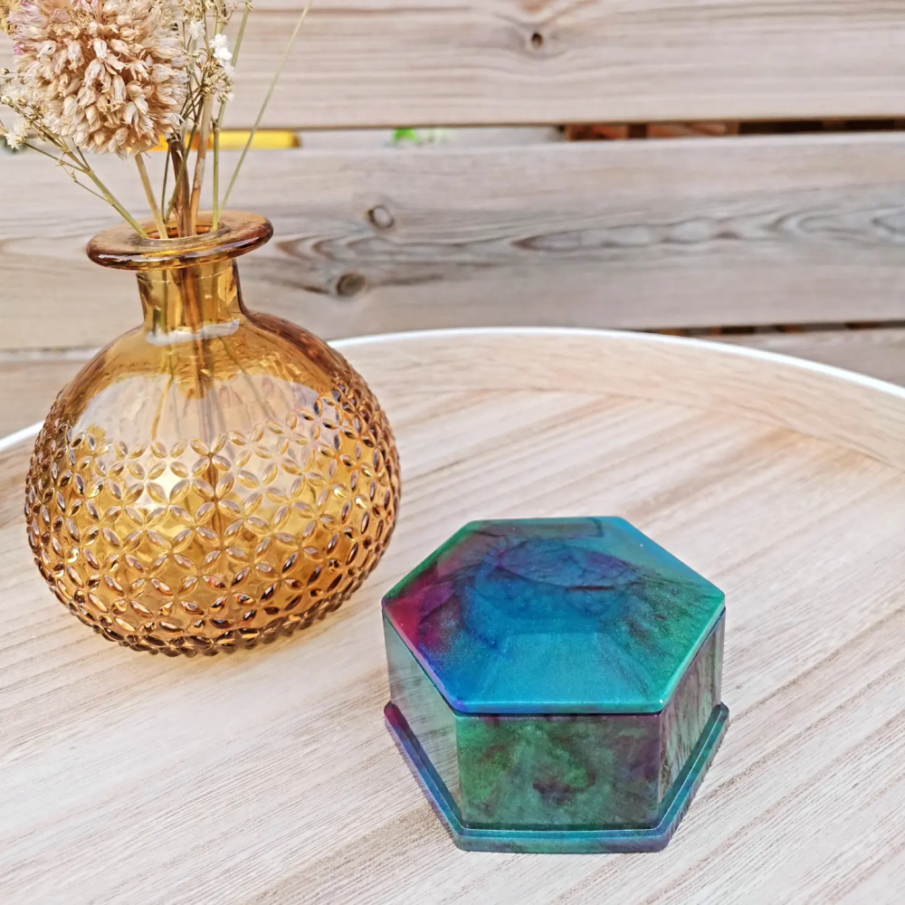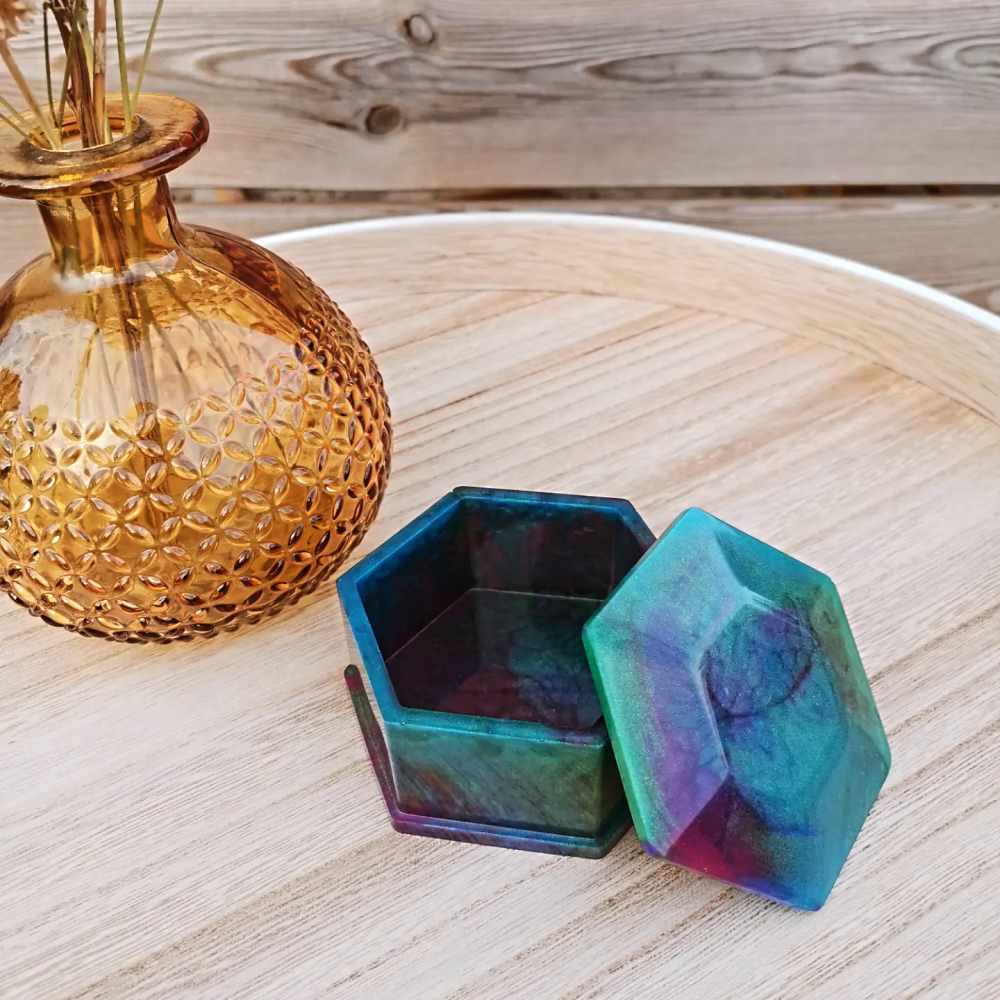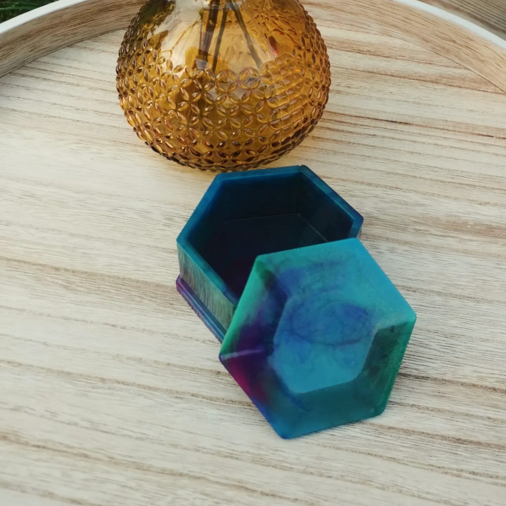 Gemaakt van epoxy, een hexagon doosje