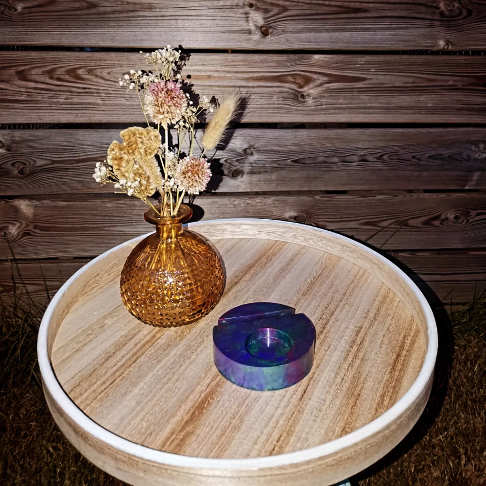Ronde kaarsenhouder waar je eventueel ook een dubbele kaart in kan zetten.