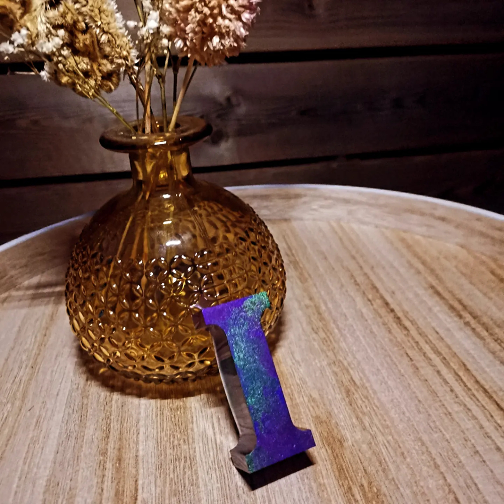 Epoxy letter in een galaxy kleurenpalet. De letters zijn 6 cm hoog.