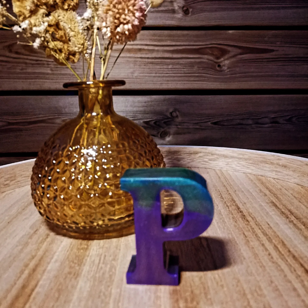 Epoxy letter in een galaxy kleurenpalet. De letters zijn 6 cm hoog.