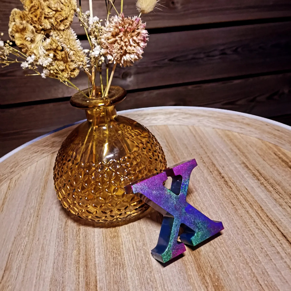 Epoxy letter in een galaxy kleurenpalet. De letters zijn 6 cm hoog.