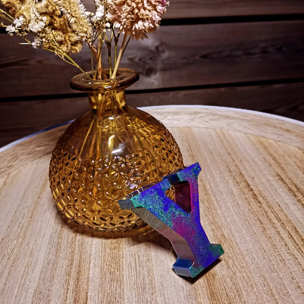 Epoxy letter in een galaxy kleurenpalet. De letters zijn 6 cm hoog.