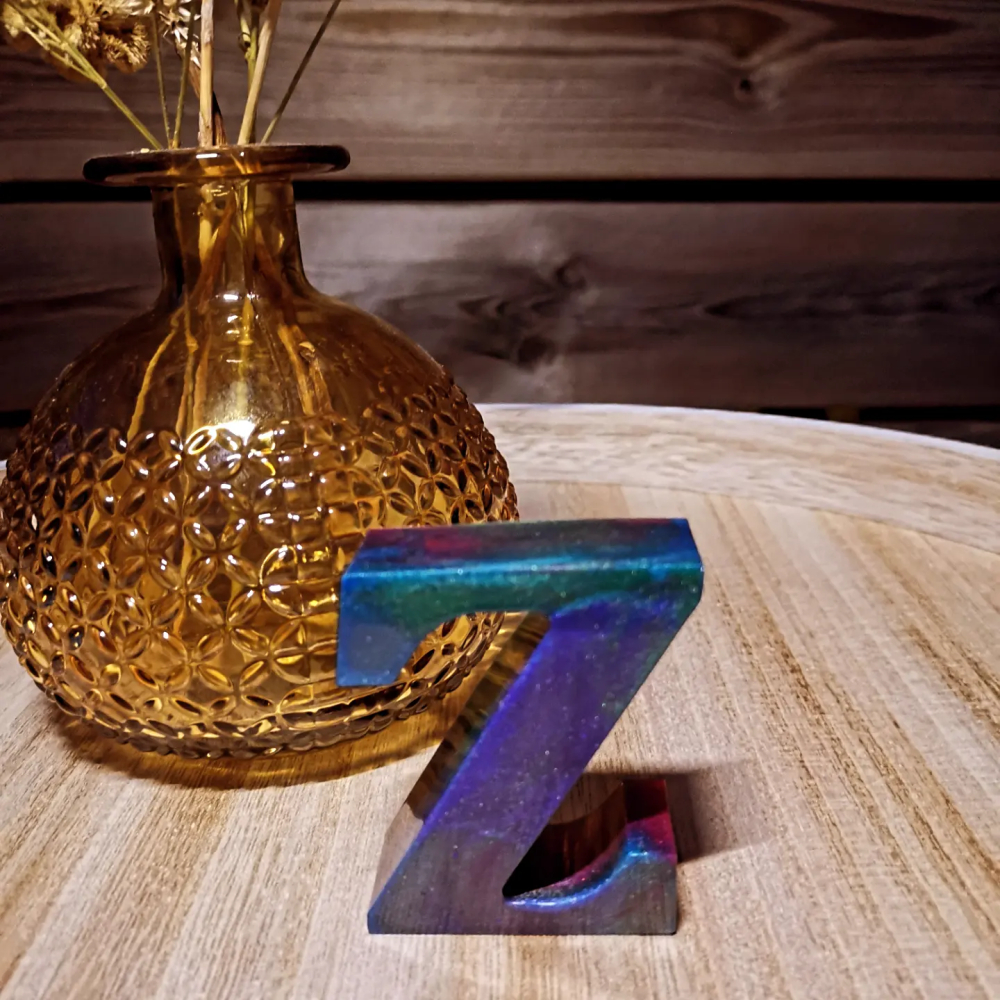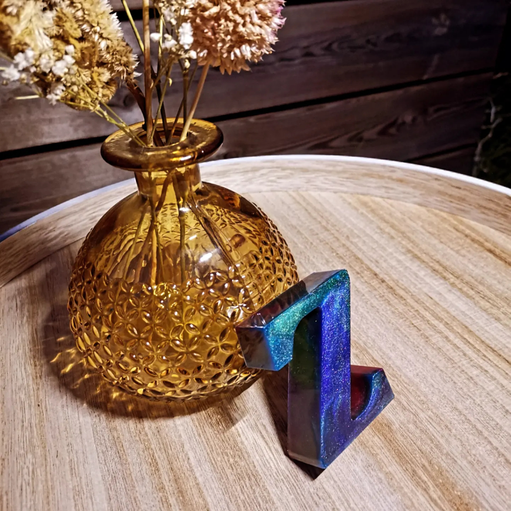 Epoxy letter in een galaxy kleurenpalet. De letters zijn 6 cm hoog.