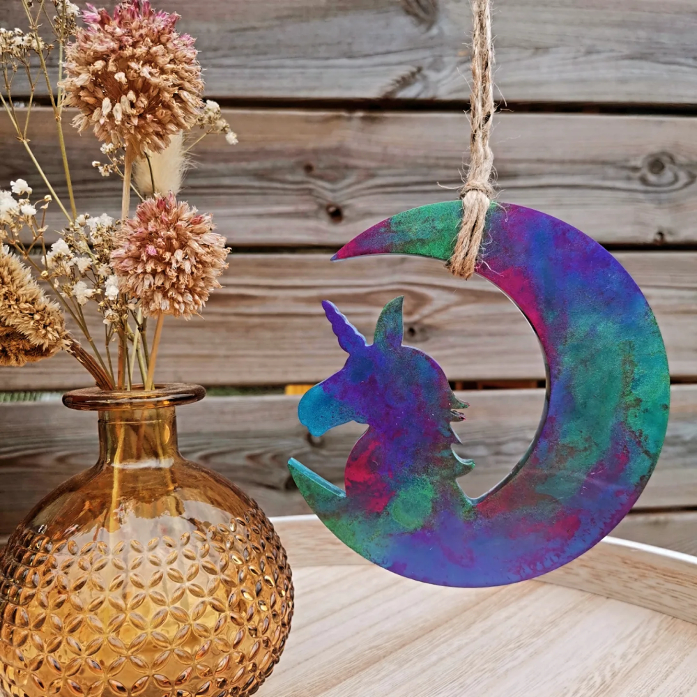 Hanger maan met unicorn gemaakt van epoxy.