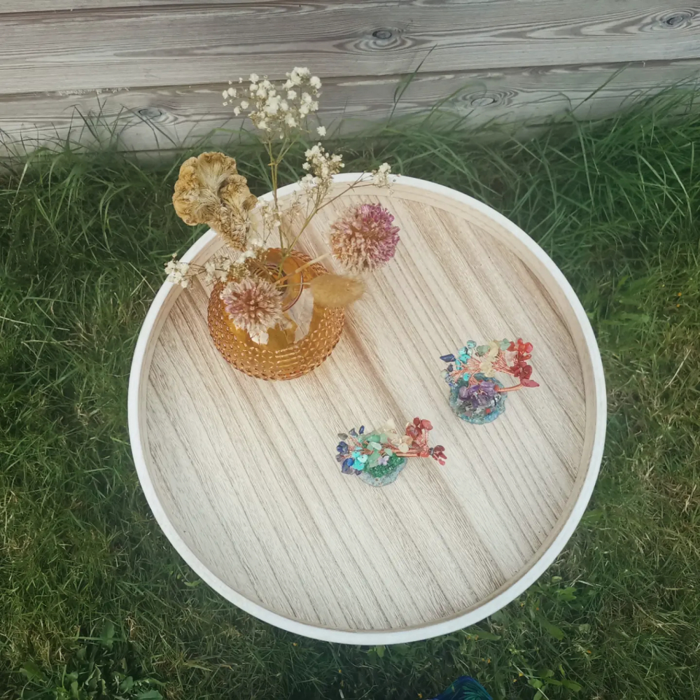 Natuurstenen boom met 2 verschillende voetjes.