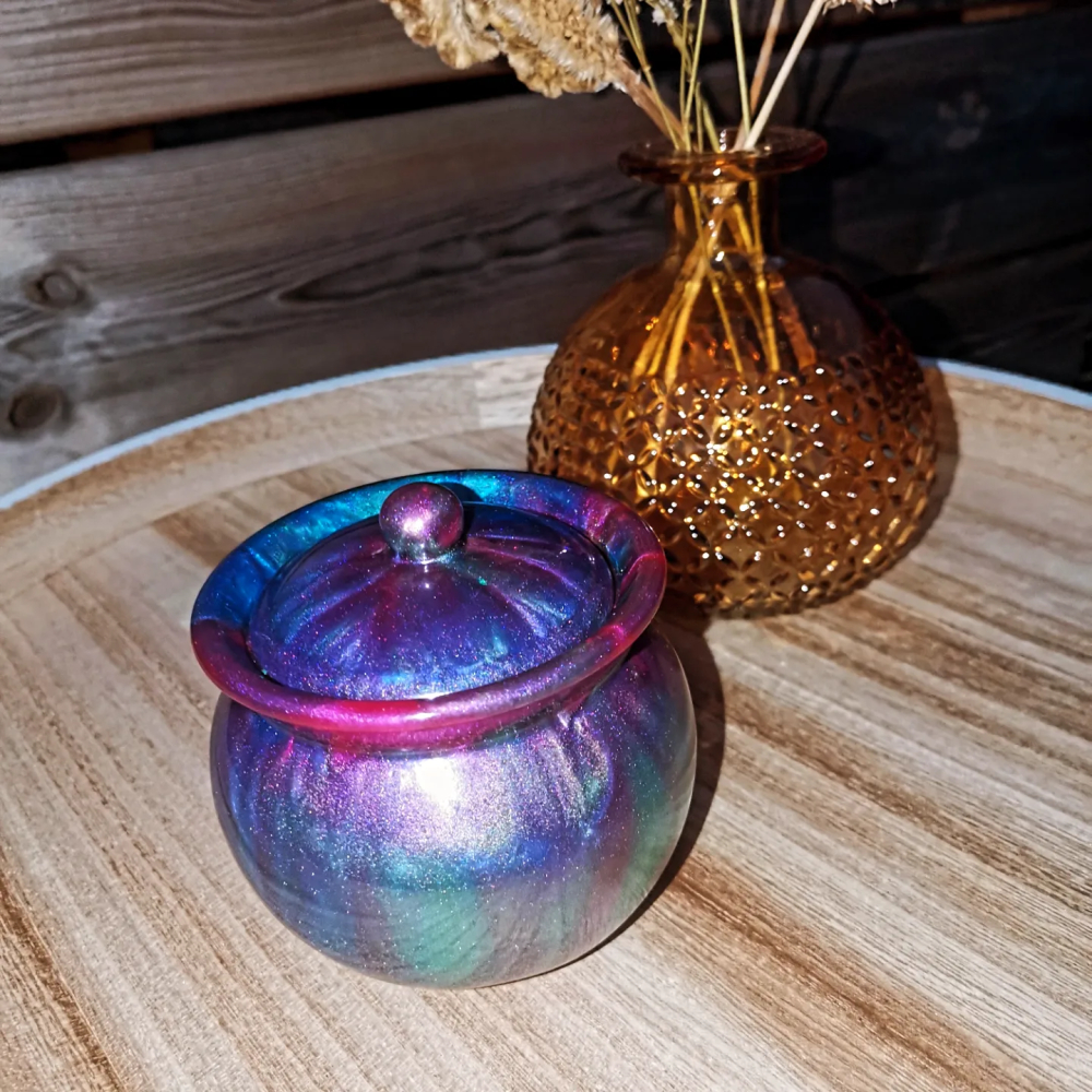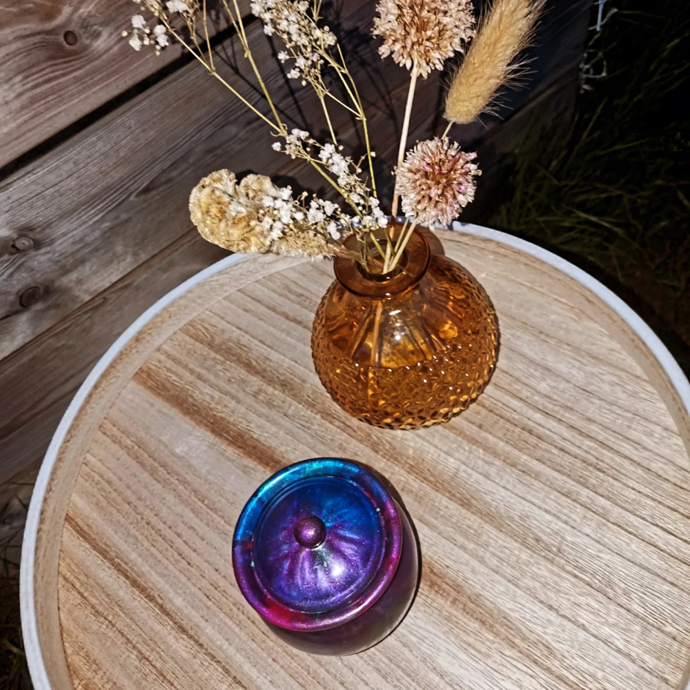 Deze urn met deksel, is een van de 7 epoxy urnen in ons assortiment zit.