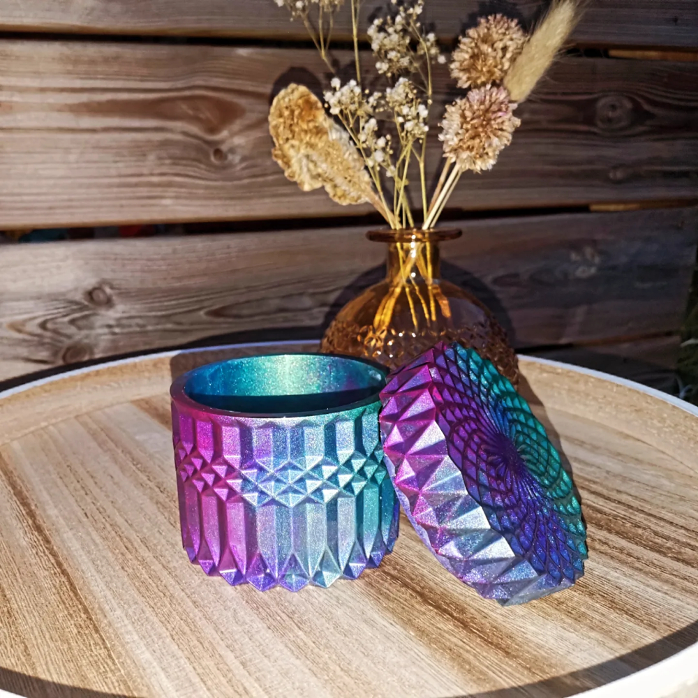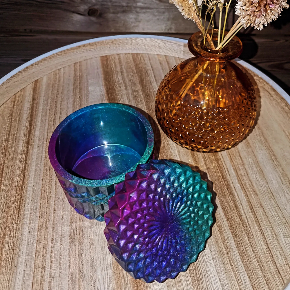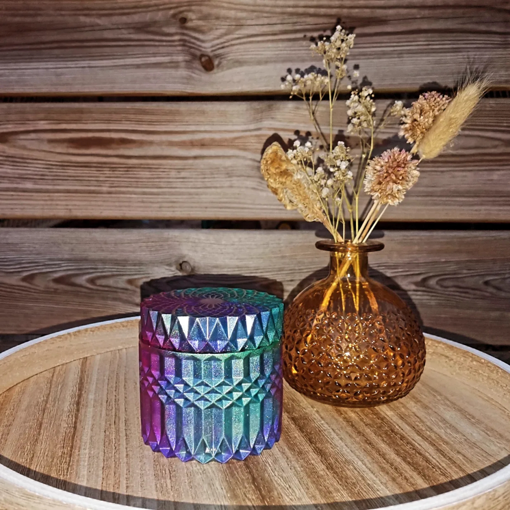 Deze urn met sierlijk motief, is een van de 7 epoxy urnen in ons assortiment zit.